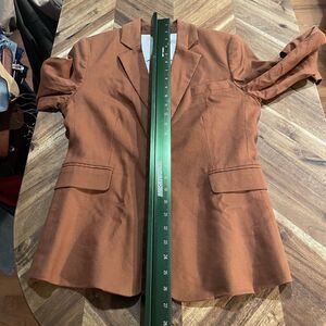 Elevate your wardrobe with the Adam By Adam Lippes Blazer, a sophisticated choice for those seeking a blend of classic style and contemporary design. Crafted from a high-quality linen blend, this size 4 blazer offers a refreshing take on the traditional suit. Its solid multicolor pattern allows for versatile pairing with a range of bottoms, making it a go-to for various occasions. The blazer features a short jacket/coat length, perfect for a modern silhouette, and is designed with a single-breasted closure for ease of wear. Long sleeves, a silk lining for comfort, and practical pockets add to the functionality and appeal of this piece. Whether it's for business, casual, or travel, this blazer's timeless appeal and designer touches make it a standout addition to any collection.