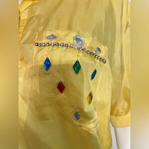 Brighten your wardrobe with this stunning yellow top, featuring colorful embellishments for a unique touch. Perfect for any casual outing.