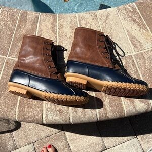 Adam Duck Boots Tan leather, blue rubber on bottom Men’s Size 8 Copy-NWOT