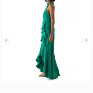 Adam Emerald Green High-Neck Ruffle High-Low Dress