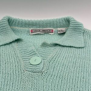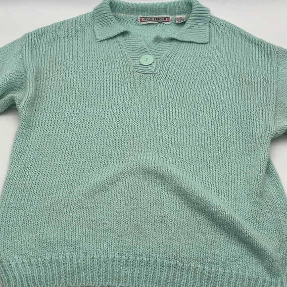 Keywords: Adam French sweater, mint green sweater, knit polo sweater, women's acrylic sweater, vintage knit top, lightweight sweater, casual sweater, polo collar top, button neck sweater, retro knitwear, plus size sweater, oversized sweater, fall fashion