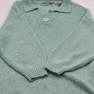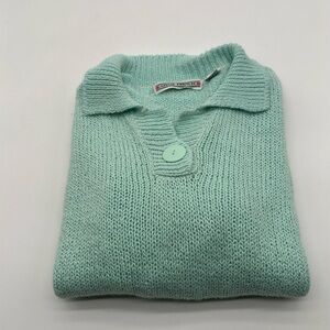 Adam French Mint Green Knit Polo Collar Sweater Top Women's Size Large Acrylic