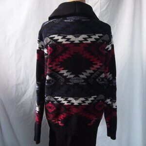 Adam Levine Chunky Knit Cowl Neck Cardigan /Red Blue Aztec Print Size L