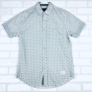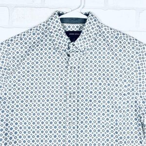 Adam Levine Collection Collared Button-up Shirt, White & Blue, Size Small