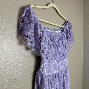 Adam Levine Dress Woman Size Medium Purple Lace Off Shoulder Open Back Mini