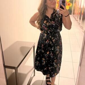 Chic wrap shirt dress with button front waist, collared v-neck in a flattering crepe fabric romantic floral print. Perfect for career, date night, going out, office party, happy hour, office, conference business event, statement piece