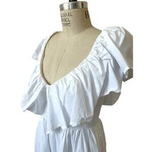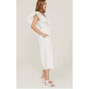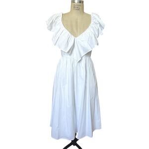 Adam Lippes Collective Cotton V-Neck Midi Length Dress in White Size 10