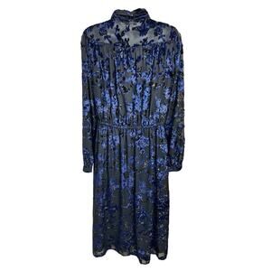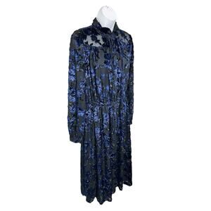 Adam Lippes Collective RTR Velvet Embroidered Black Navy Midi Dress Sz 6 Floral