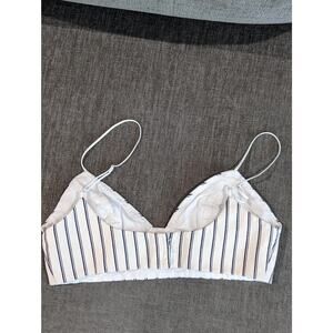 Adam Lippes Size 0 Beige Striped Denim Bralette Top V-neck 100% Cotton FLAWED