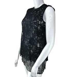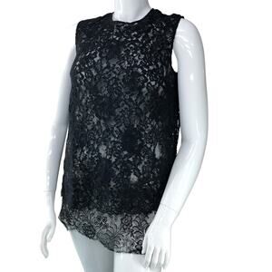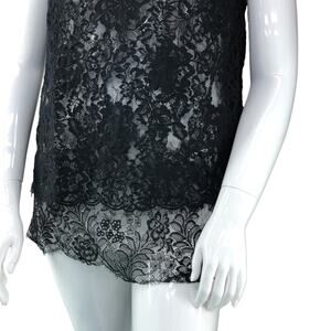 Adam Lippes Women Size 8 Lace Layered Top Tunic Length Sleeveless Black USA MADE