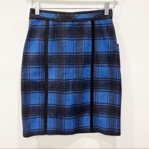 Adam Lippes Wool Cashmere Plaid Skirt Side Pocket Blue Black 4