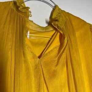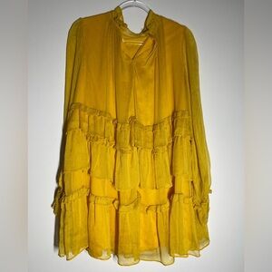 Adam Lippes brand golden yellow chiffon mini dress, women’s size 2. Features tiered ruffles, sheer sleeves with buttons, keyhole neck with additional button closures. Light and airy dress, beautiful color.