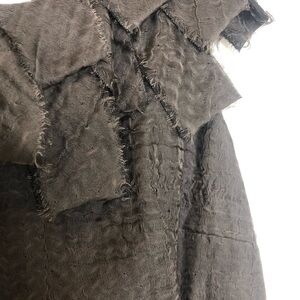 A stunner yet simple dress with scoop neck accented by strips of cloth. Super edgy and beautiful at the same time. Wool silk blend