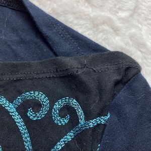 Adam Pour Eve Paris Embroidered Front T-Shirt. Great used condition. Front blue tone floral embroidered design. Boat neck. Stretchy. Measures chest 28”, length 20.5”, sleeve 6.5”. No size indicted please go by measurements provided.