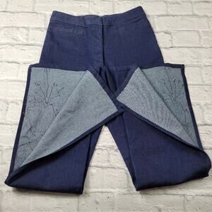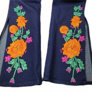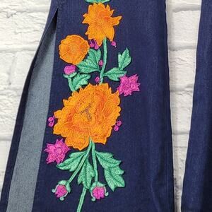 Gorgeous floral applique in bright orange, pink & green on bottom half of legs