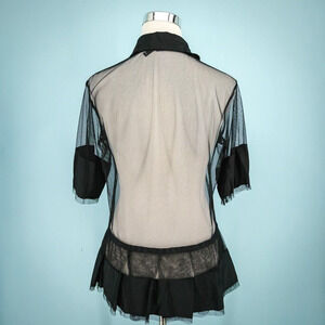 Adam Selman Size Medium M Black Mesh Button Ruffle Layered Short Sleeve Top