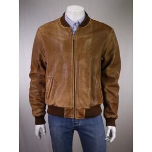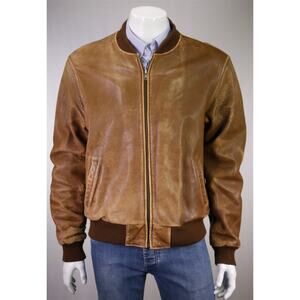 Adam Spencer Vintage 80s 90s Brown Leather Bomber Flight Varsity Jacket 46/XL