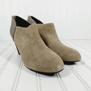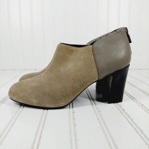 Adam Tucker Jagger Taupe Tan Gray Suede Block Heel Back Zip Ankle Boots H164