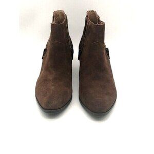 Adam Tucker Womens Ankle Boots Brown Suede Slip On Shoe Faux Zip Stretch 7