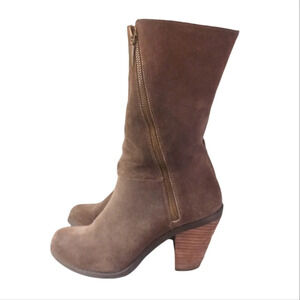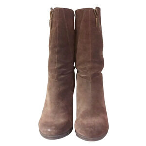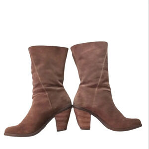 Adam Tucker Womens Tall Brown Suede Heeled Boots Mid Calf sz 6