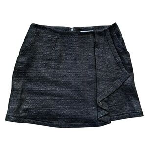 Adam by Adam Lippes Tweed Linen Blend Pleated Mini Skirt Metallic Black Size 6