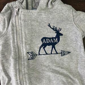 “Adam” personalized long sleeve gray romper, size 3-6 months 7 for all mankind
