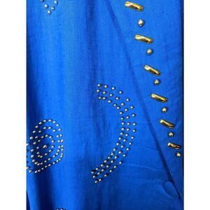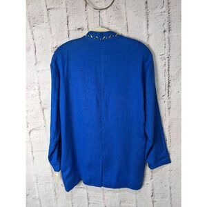 Adam Douglas Adrianna Papell 100% Linen Blazer M Medium Blue Gold Studded NWT