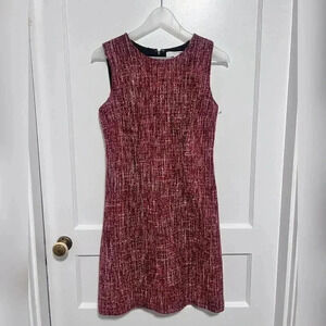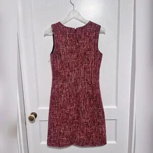 Red tweed (100% Polyester). Sheath. Sleeveless. Crew