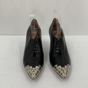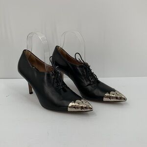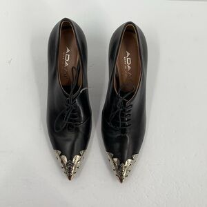 Adami pointed toe black leather oxford heels shoes silver filigree witchy 38 7