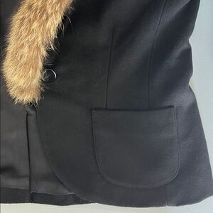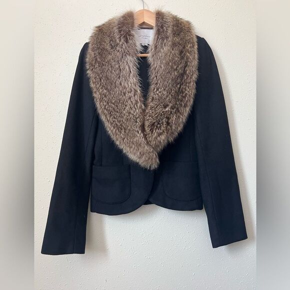 Adampluseve by Adam Lippes Black Wool Coat with Fur Collar Size 6