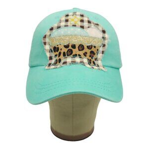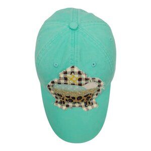 Adams Embroidery Applique Baby Crib Tuck Strap Teal Cap Star Animal Print Hat