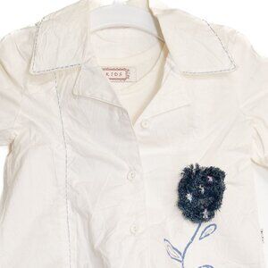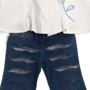 Elevate your child's wardrobe with this charming Adams Kids outfit. The white button-up shirt features delightful floral embroidery, while the glittery blue jeans add a touch of sparkle to her ensemble. Ideal for both casual outings and special occasions, this set offers comfort and style in one adorable package.