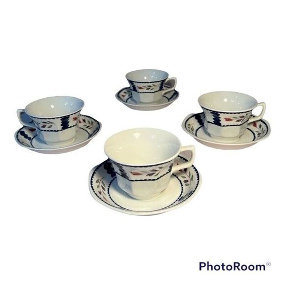 Adams Lancaster Tea Cups & Saucers Real English Ironstone Made in England 4 set.