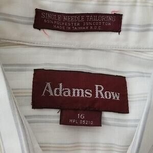 Adams Row men's striped short sleeve button up shirt. White with blue & tan stripes.