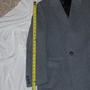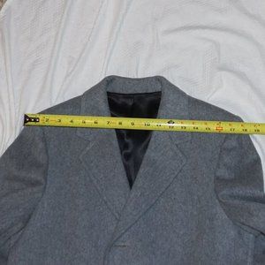 100% wool exterior with 2 flap closure pockets. Lined. 1 interior chest pocket. Very soft. Approximate measurements are with coat lying flat; please use photos for further clarification.