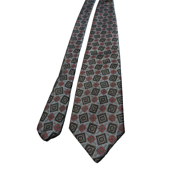 Adams Row Polyester Blend Mens Tie Gray Red Geometric Pattern Made in USA