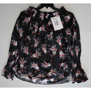 Adan Lippes Women's Sz M Black Floral Print Off-the-Shoulder Poplin Top