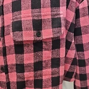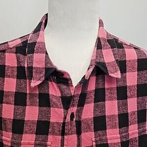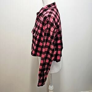 Adaptation Black and Pink Cropped Flannel Shirt Oversized 2 Pockets Women Sz S