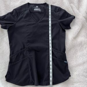 Form fitting, many pockets. Colors in pictures are off because of room lighting but it is solid black