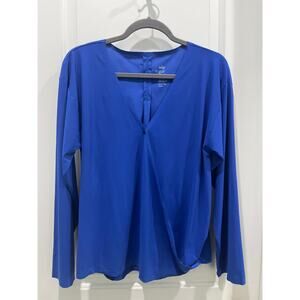 Aday That's A Wrap Top V-neck Long Sleeves in Blue Sz S