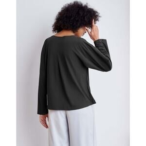 5 shirts in 1. This versatile and universally flattering blouse features secrets snaps that can be tied, draped, and snapped multiple ways. This product runs large, size down for a closer fit.
