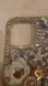 Add a touch of elegance to your iPhone 12 Pro Max with this rhinestone phone case. It features a unique design with embellishments, including pearl accents, floral elements, and a "Parfum No. 5" charm. This case is ideal for those who love glamorous accessories.