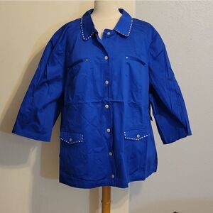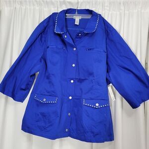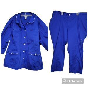 NWT, but jacket has a little damaged area which looks like little tugs/holes as pictured. It is somewhat noticeable once you know it's there. The pants are a 28x with an elastic waistband and top is 4x which is 30 or 32. Snap on buttons.