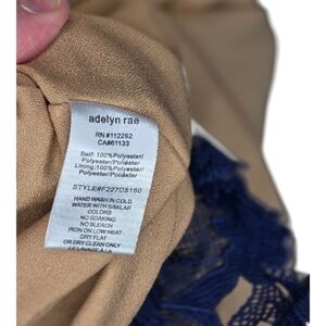 This elegant navy lace dress is perfect for any occasion. Deep V neck with a low back, slightly puffed sleeves and A-Line skirt. The intricate lace design adds a touch of sophistication and style.