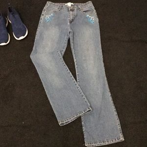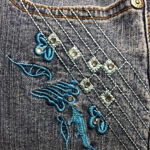 Embroidery decoration with rhyme stones on pockets. Great stretch well hugging the curves.