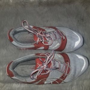 Very comfy used sneakers. They are slightly stained which actually show way more in the picture with flash. It really is unnoticeable in person.