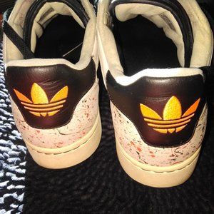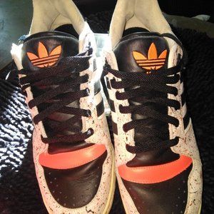 Colors of white and black with multicolored background adida logo neon orange