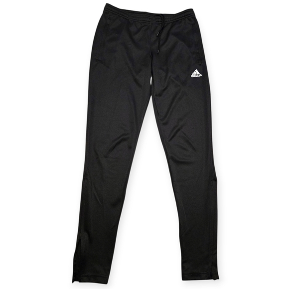 Addias Pants gently used size small. The pants have a drawstring waist, functional pockets and a partial zipper option at the bottom of each pants leg. The material is 100% polyester. Does come from a pet friendly home.