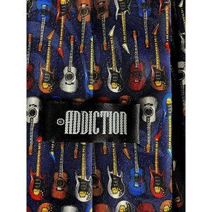 Addiction Guitar Pattern Mens Tie Classic Musicians Novelty Professional Navy