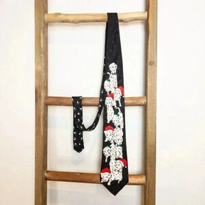 Addiction Mens Christmas Dalmation Puppies Dogs Tie 100% Silk Hand Made Vintage